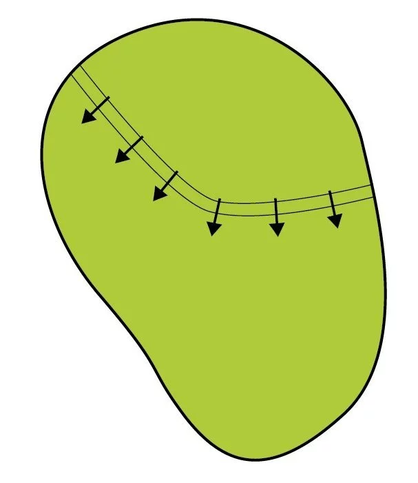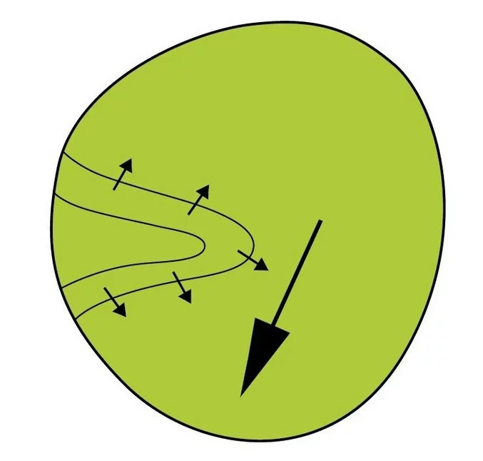 Mit dem zweiten Schlag sollte idealerweise zwischen die Teiche gezielt werden. Wer zu nahe vor dem rechten Teich zu liegen kommt, darf aus einer Abwärtslage weiterspielen.